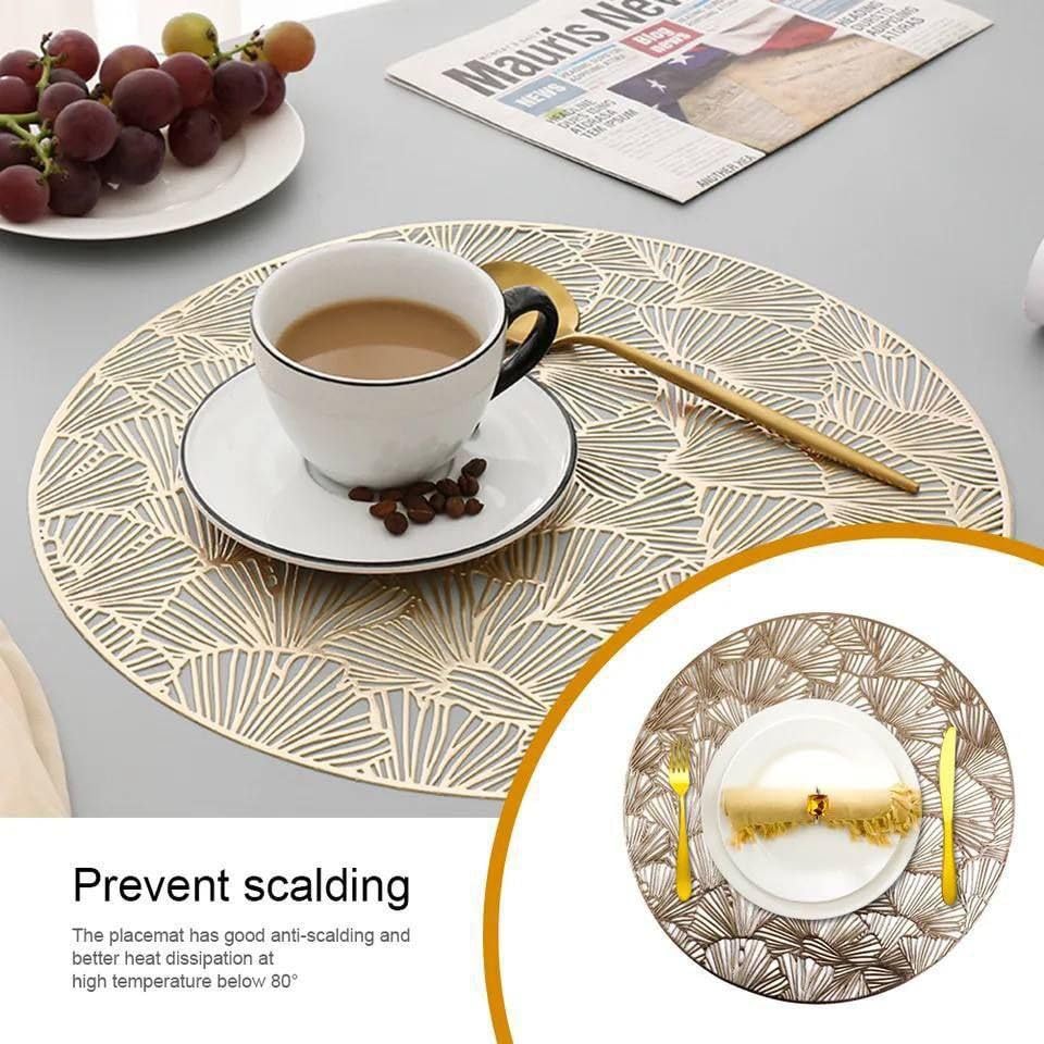 • PREMIUM DESIGN: Elegant gold pattern leather placemats add sophistication to your dining table while protecting it from heat, spills, and scratches