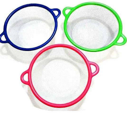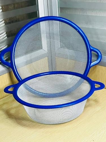 - VERSATILE DESIGN: Round metal mesh strainer with durable plastic frame available in multiple colours, perfect for straining pasta, vegetables, and other foods