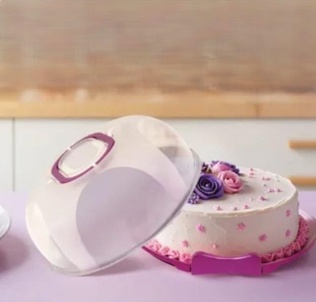 - PROTECTIVE DESIGN: Round plastic cake container features a secure lid with integrated handle for easy carrying and transport of decorated cakes and baked goods