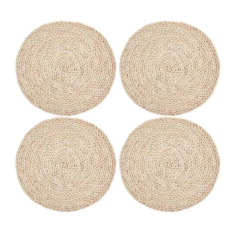 Generic - Generic Round Woven Wicker Coasters, 14 cm, Natural, Set of 4, Heat-Resistant, Non-Slip .mh