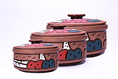 Generic - طقم حلل فخار ريفى ملون مكون من 3 قطع باحجام مختلفة بني فينتاج