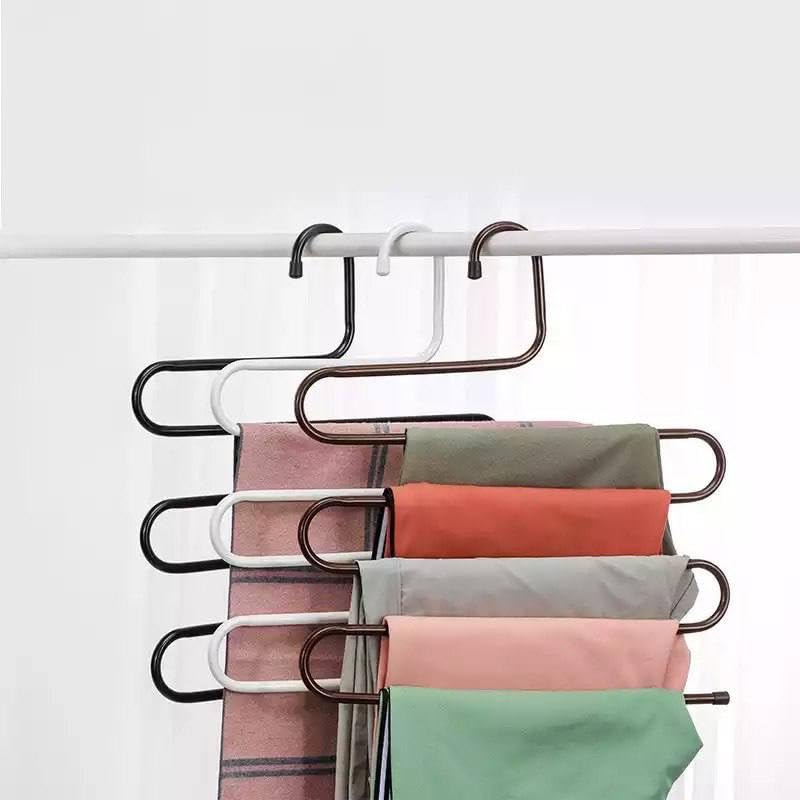 - SPACE-SAVING DESIGN: S-shaped multi-layer metal hanger efficiently organizes multiple pairs of trousers vertically, maximising closet storage space