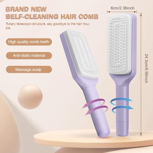 Generic - جيني مشط شعر ذاتي التنظيف، تصميم تلسكوبي دوار، شعيرات نايلون مضادة للكهرباء الساكنة، طول 9.5 انش، ارجواني