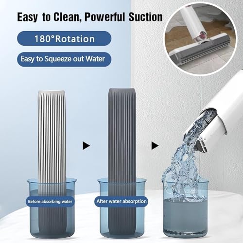 - 【Wet & Dry Double Use & Hands-Free Wash】Water stains can be instantly wiped, do not leave any water stains, can be folded to the center 180 degree for strong stimulation, round type pull design, convenient for washing and drying, suitable for all kinds of table surfaces and windows , floors, kitchens, living room and bathrooms.