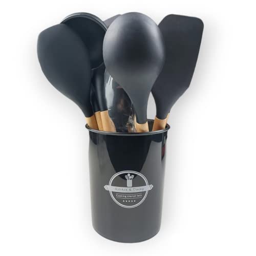 Generic - Generic Silicone Black Kitchen Utensils Set of 12 Pcs - FOOD SPATULA