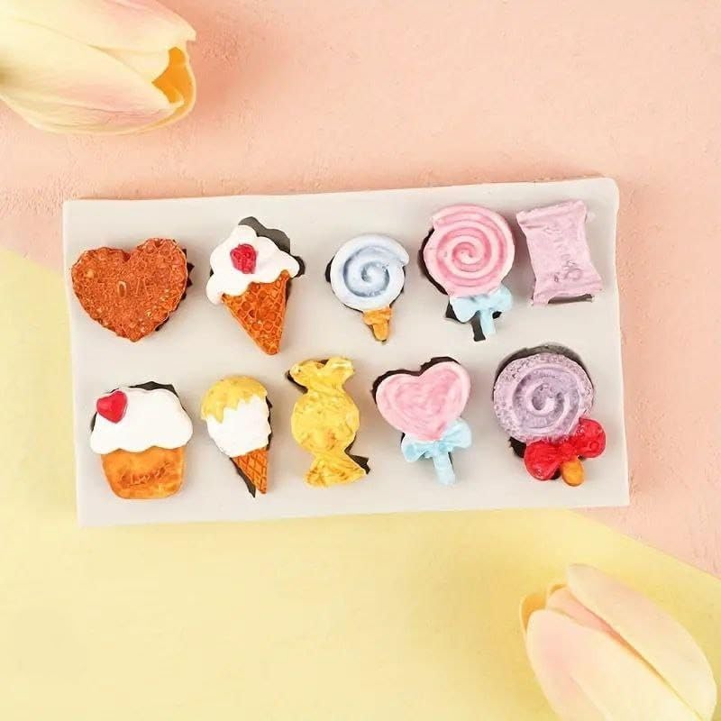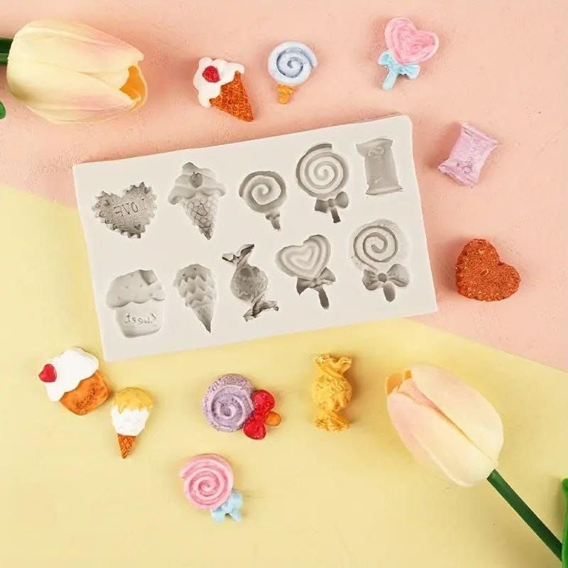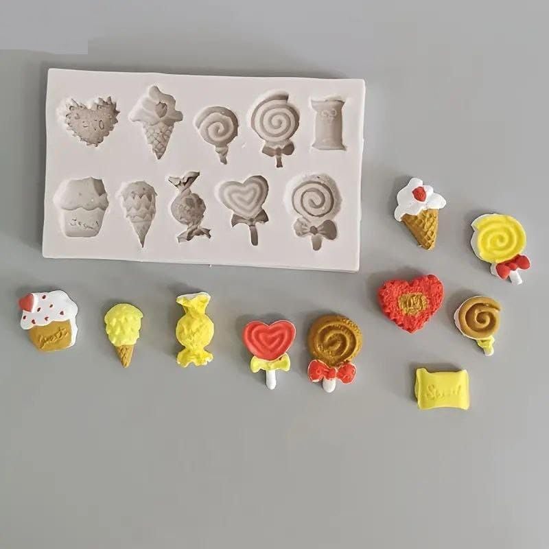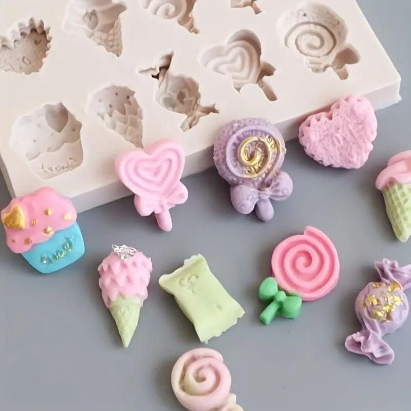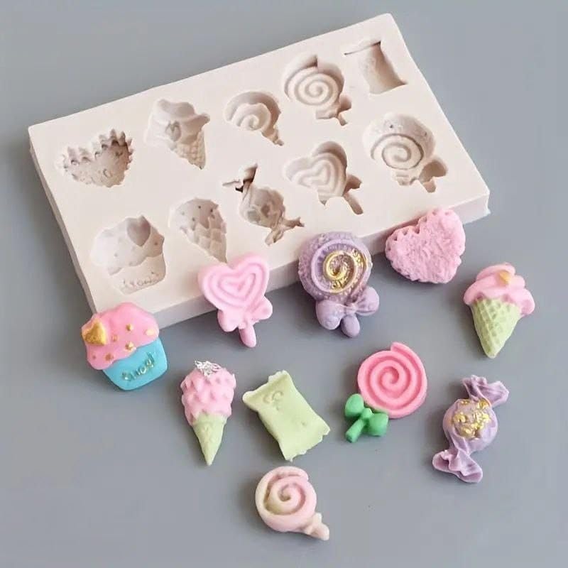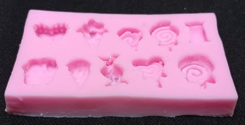 - Multiface: Silicone mold contains 10 different designs including hearts, ice cream, wrapped candy and candy