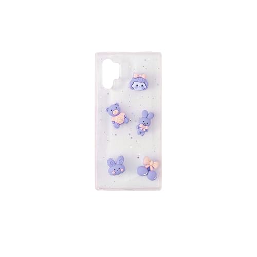 Generic - جراب خلفي لموبايل سامسونج نوت 10 بلس، تصميم بناتي شفاف، مصنوع من السيليكون، ماص للصدمات، ناعم (الهيكل الرئيسي)، حواف مزخرفة مع ألعاب صغيرة، لون أزرق (Sky Blue)