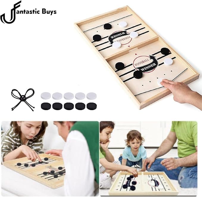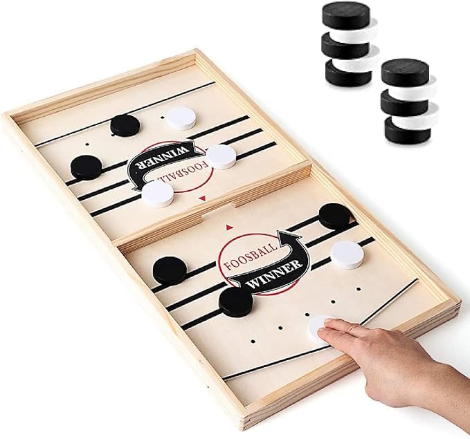 - FAST SLING PUCK GAME - This wooden hockey game is a fast and smart game, a beautiful gift for family and friends, ideal gift for kids, develop children's various abilities, improves your child hand-eye coordination, strengthens fine motor skill extending the childs focus, slingshot games,
