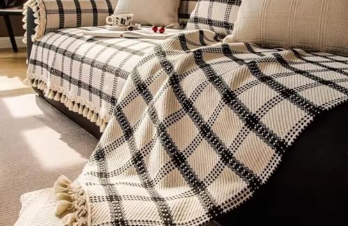 - ELEGANT CHECKERED DESIGN: Features a sophisticated black and beige plaid pattern in Gobelin weave that adds a classic, timeless aesthetic to your living space whilst coordinating with various interior décor styles