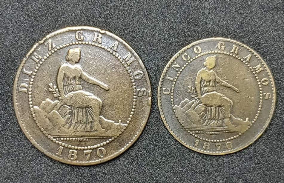 Generic - مجموعة عملات معدنية تعود إلى عام 1870 لحكومة إسبانيا المؤقتة