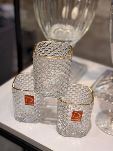 - Premium Crystal Glass Set: Includes 6 square-shaped crystal glasses with elegant textured diamond pattern design that adds sophistication to any dining or bar setting