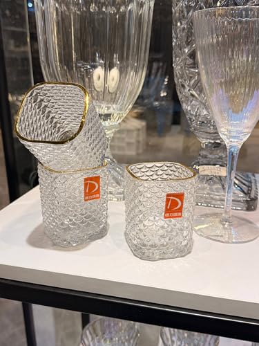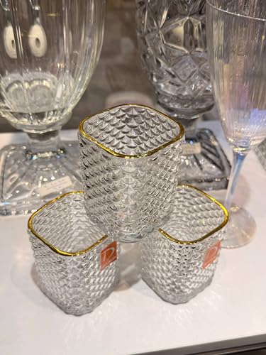 Generic - Generic Square Crystal Glass Set with Gold Rims, 6 Pieces, Imported Drinkware .soh