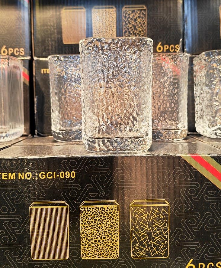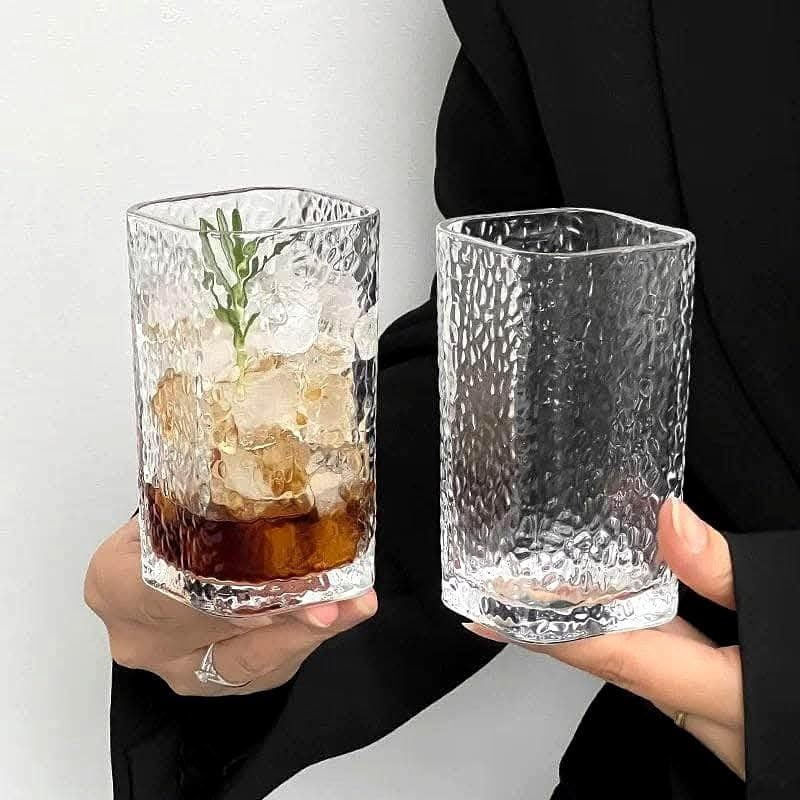 - PREMIUM DESIGN: Square-shaped crystal glass cups with elegant textured pattern that adds sophistication to your drinkware collection