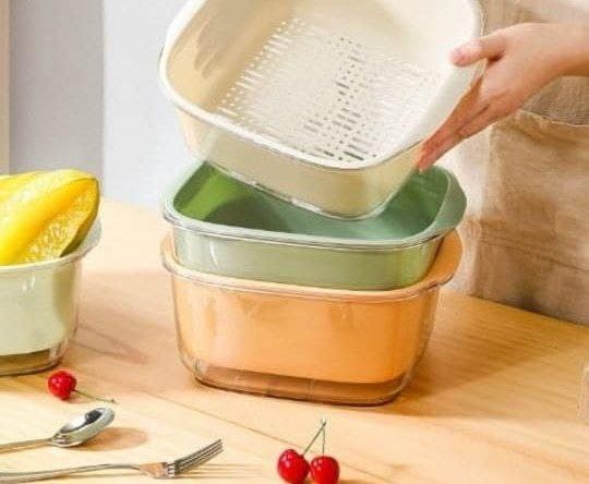 - Dual-Layer Design: This set features two compartments - a deep acrylic basin for soaking and a strainer for rinsing fruits and vegetables.