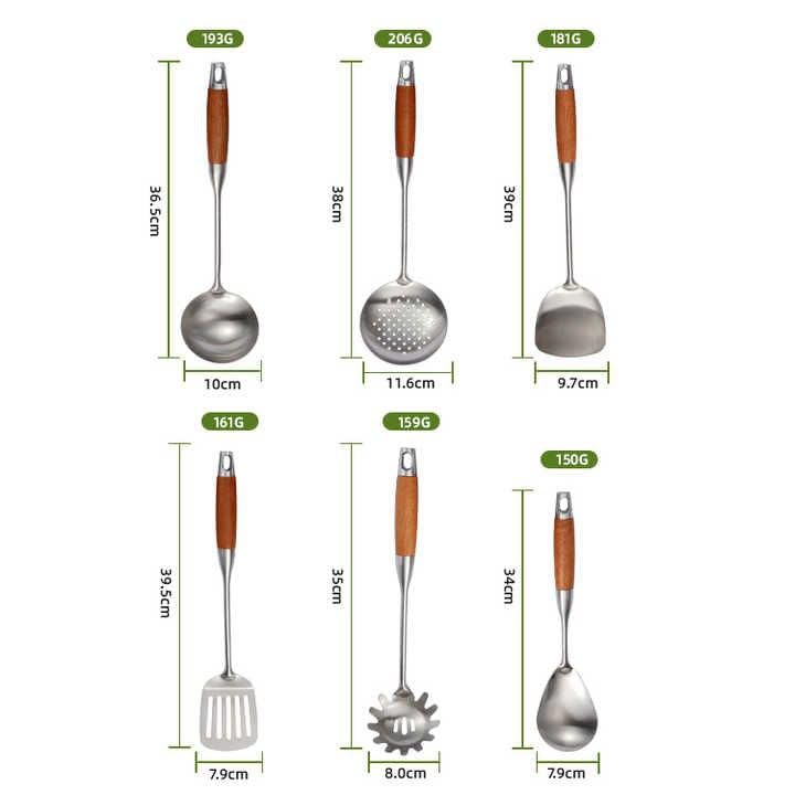 - ERGONOMIC DESIGN: Each utensil features a balanced construction with wooden handle sections for comfortable, secure handling during cooking