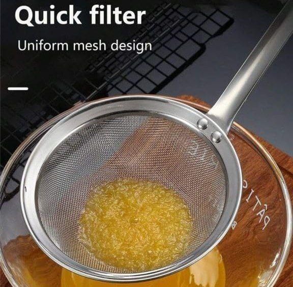 • VERSATILE STRAINING: Perfect for straining food, oil, fried foods, sugar, and other kitchen ingredients with its fine mesh design that effectively filters whilst allowing liquids to pass through