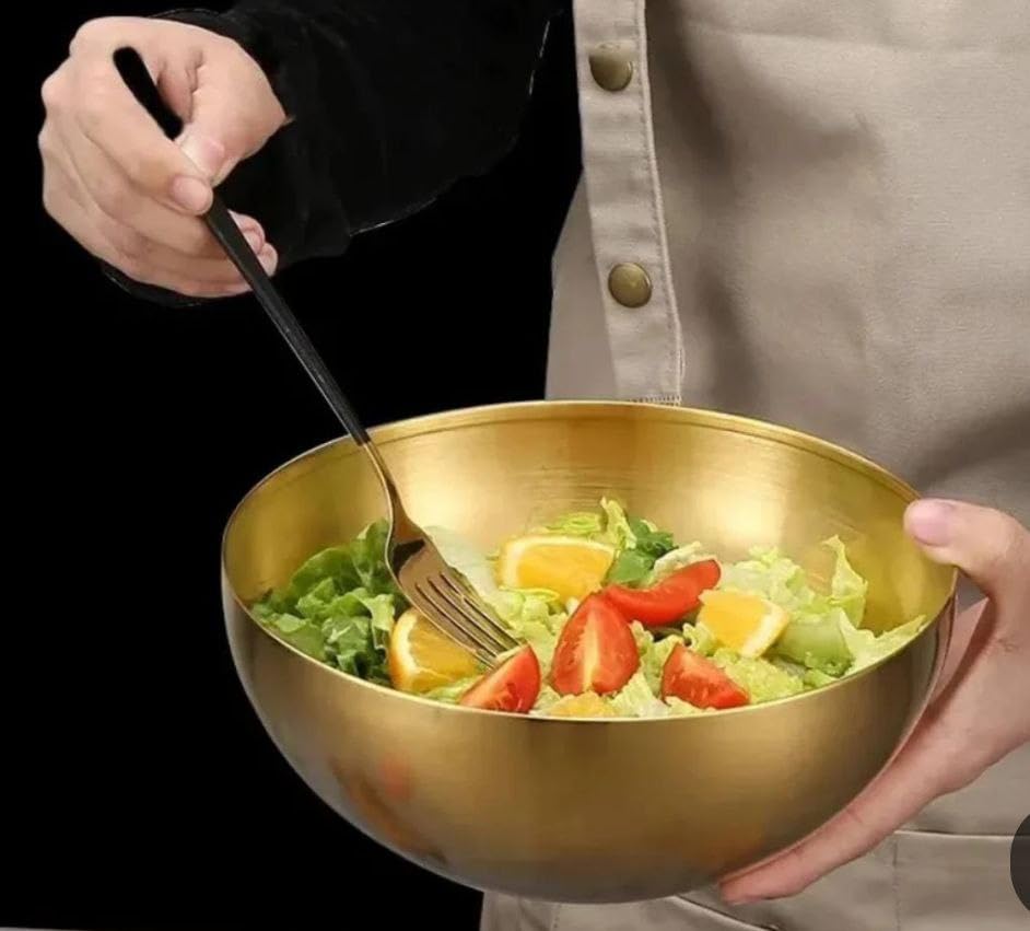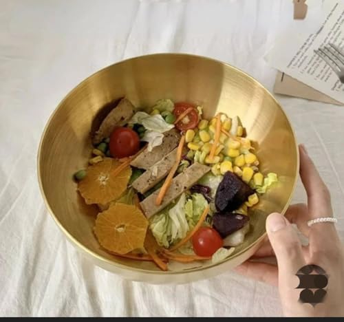 Generic - Generic Stainless Steel Salad Bowl, Golden Finish, 700ml Capacity, Large Round Serving Bowl for Kitchen, Dining .flo