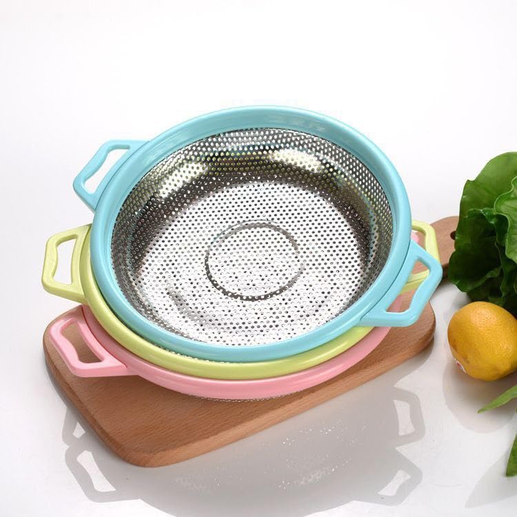 - VERSATILE DESIGN: Modern stainless steel strainer basket with perforated design, perfect for draining vegetables, rice, and other foods with dual handles for easy handling
