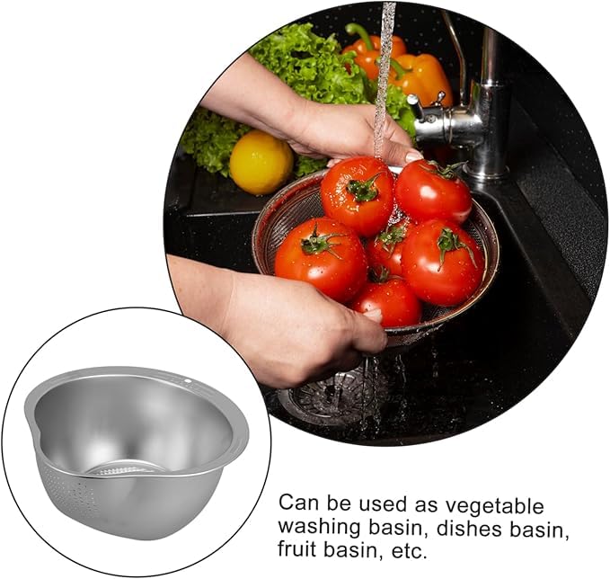 - 🍓Rice Washing Bowl with Strainer Fruit Bowl Colander Stainless Steel Strainer Bowl Colander Sieve Sifters for Rice Pasta Noodles Vegetables.