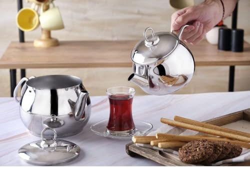 Generic - إبريق شاي من الفولاذ المقاوم للصدأ، قابل للوضع على النار مباشرة، بهيكل مزدوج الجدار نمط اس جي
