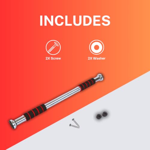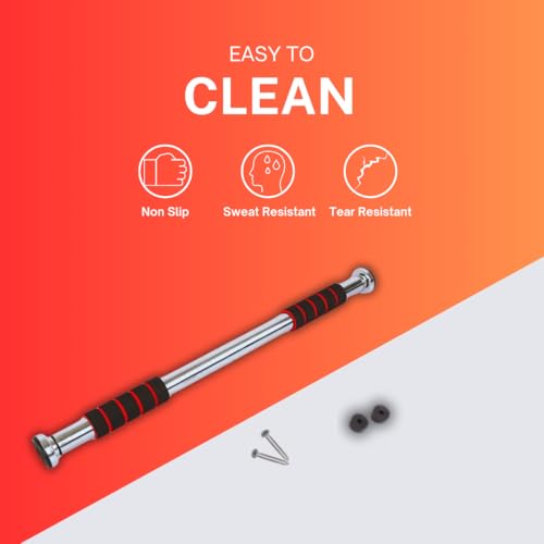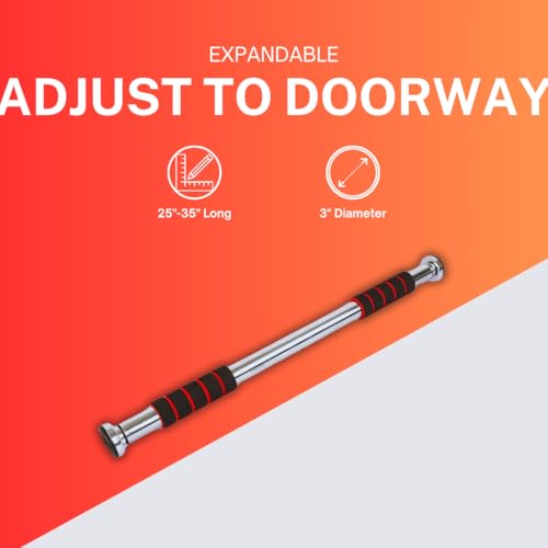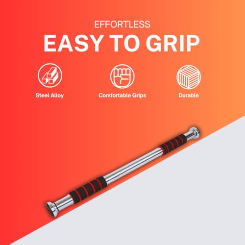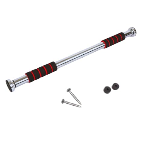 Schibs - قضيب سحب صلب للمدخل للياقة البدنية المنزلية في الأماكن المغلقة مبطن للجزء العلوي من الجسم بتحمل وزن أقصى 136 كيلوجرام، لون فضي وأسود وأحمر