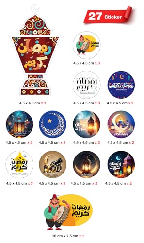 - عدد 27 ستيكر متنوعة الاشكال رمضان كريم