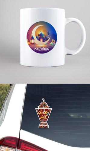 Generic - ستيكر للسيارة استيكر بادجات سيارات لزجاج السيارة و أبواب الغرف الحائط للزجاج شهر رمضان اسلامى كريم لون ابيض