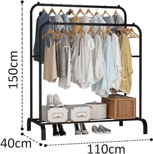 - Metal clothing stand measures up to 150x110x40cm for large hanging space.