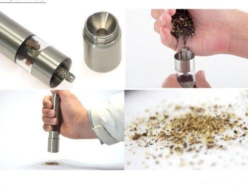Spaceshoop - مطحنة فلفل قابلة لإعادة التعبئة، مجموعة مطحنة ملح وفلفل من الستانلس ستيل، أدوات مطبخ، مطحنة توابل تدوم طويلا للحفاظ على النضارة، زر إبهام يعمل بيد واحدة (قطعتان) - الفا شوب