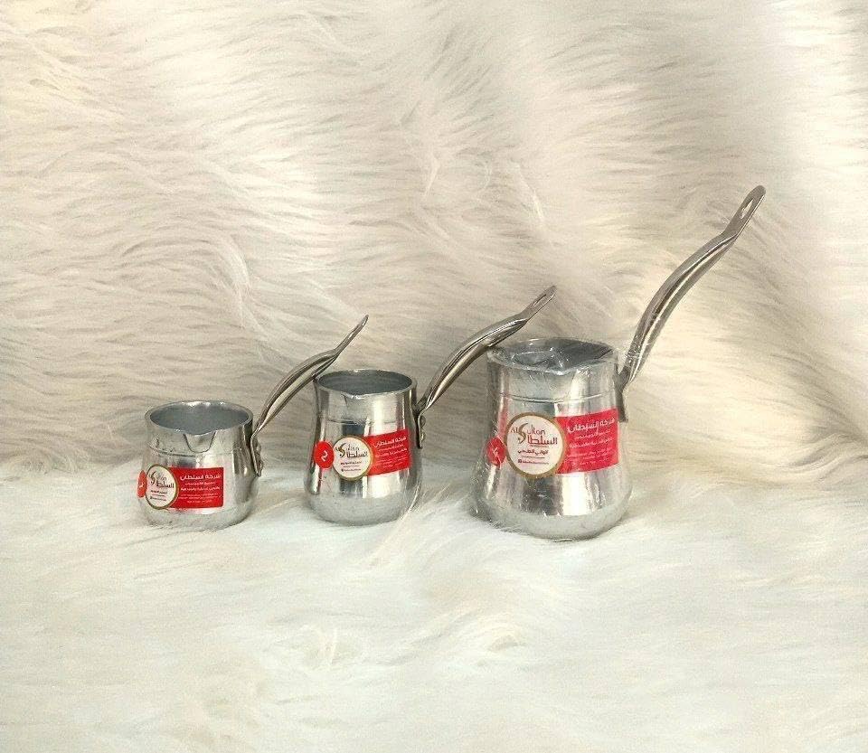 Generic - Generic Traditional Aluminum Coffee Brewing Pots, Silver, Middle Eastern Style, Set of 3, Long Handle Design .A2 (Size 1)
