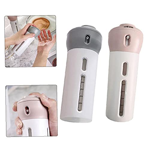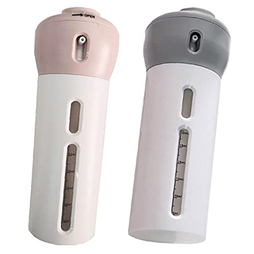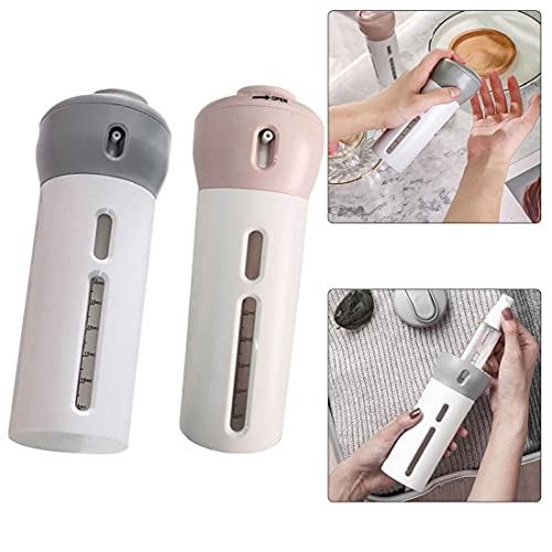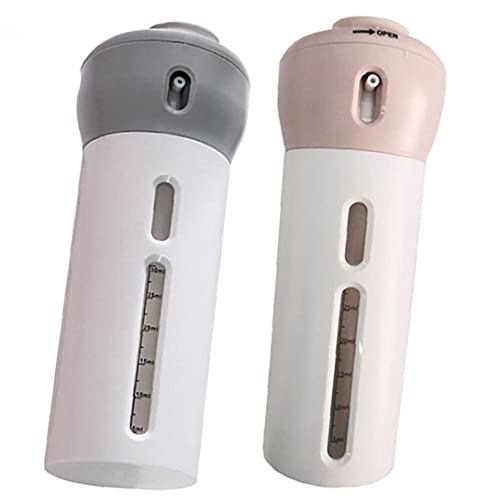 Generic - زجاجة بديلة للسفر 4 في 1، موزع لوشن ومستحضرات تجميل محمول وبتصميم قابل للتدوير، علبة فارغة بمضخة لادوات الزينة، زجاجة منظمة للمكياج، عبوة من قطعتين باللونين الرمادي والبينك