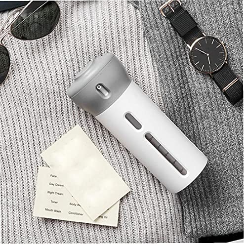 - علبة حفظ أدوات الزينة المحمولة والمزودة بزجاجات لوضع 4 أنواع من اللوشن مُجَمّعة في تصميم زجاجة واحدة مريحة للحمل أثناء السفر.