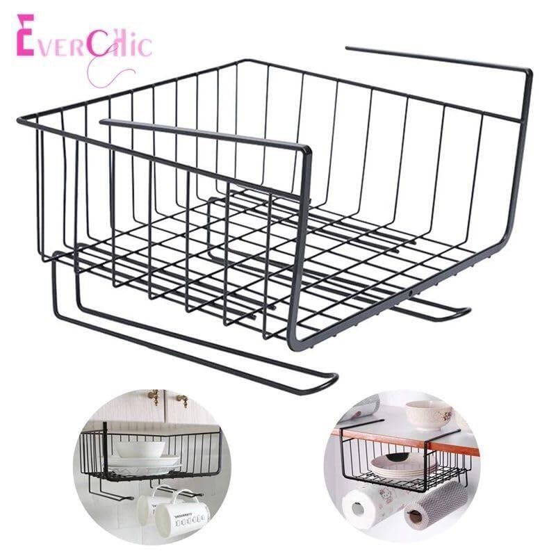 - VERSATILE DESIGN: Under-cabinet storage rack perfect for kitchens, bathrooms, and closets, featuring a sturdy black metal construction for lasting durability
