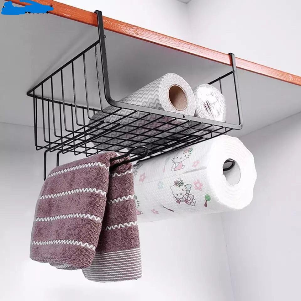 Generic - Generic Under Cabinet Storage Organizer, Black Metal Hanging Shelf with Dual Holders for Towels and Toilet Paper, Multi-Purpose Bathroom Kitchen Storage Rack .ar