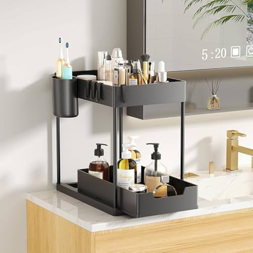 - VERSATILE DESIGN: Multi-level under-sink organizer with sturdy metal frame and adjustable plastic shelves, perfect for both kitchen and bathroom storage solutions