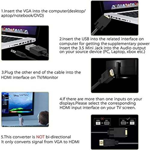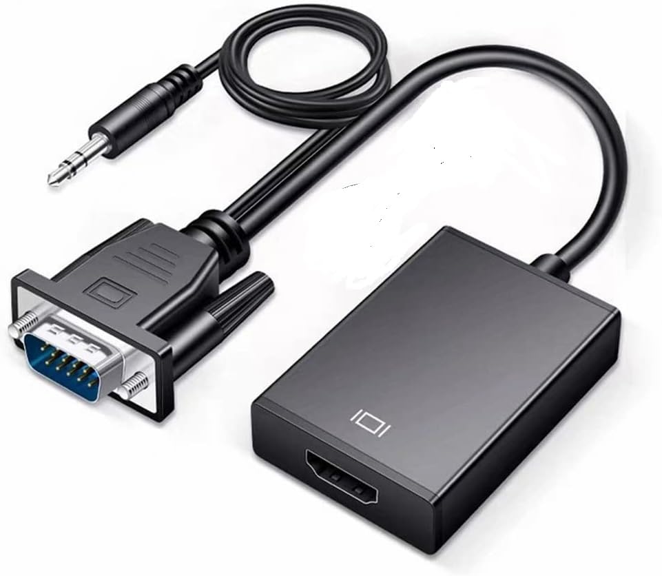 - VGA to HDMI, 1080P VGA to HDMI Adapter (Male to Female) for Computer, Desktop, Laptop, PC, Monitor, Projector, HDTV with Audio Cable and USB Cable (Black)