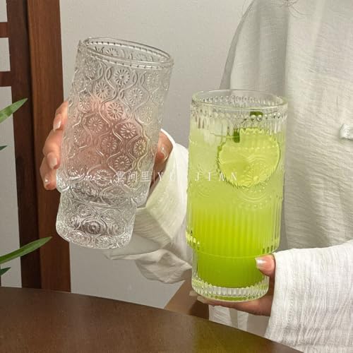 - ELEGANT DESIGN: Vintage-style embossed glass tumblers featuring intricate floral patterns and detailed geometric designs for a sophisticated look