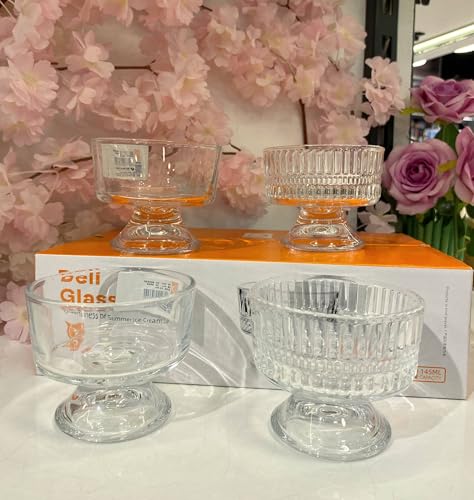Generic - جيني اوعية حلوى زجاجية عتيقة، نمط كريستال شفاف، سعة 145 مل، مجموعة من 6 قطع، للايس كريم والجيلي واكواب صغيرة
