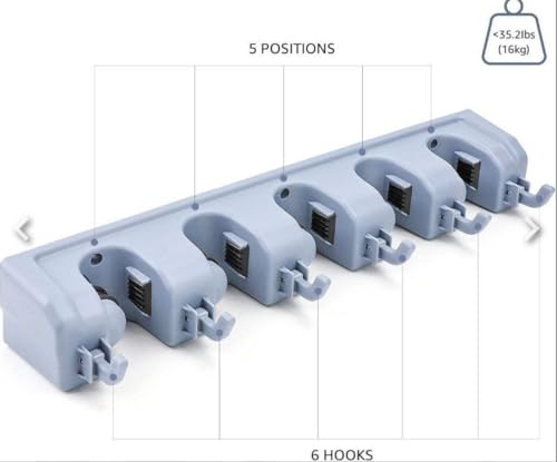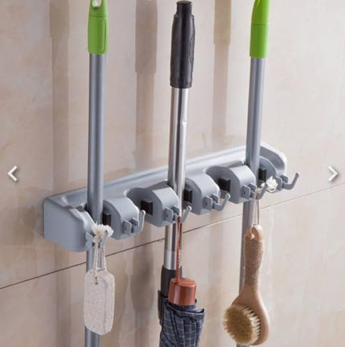 Generic - جيني حامل مكنسة ومنظم تخزين يثبت على الحائط، 5 فتحات مع خطافات، لون رمادي