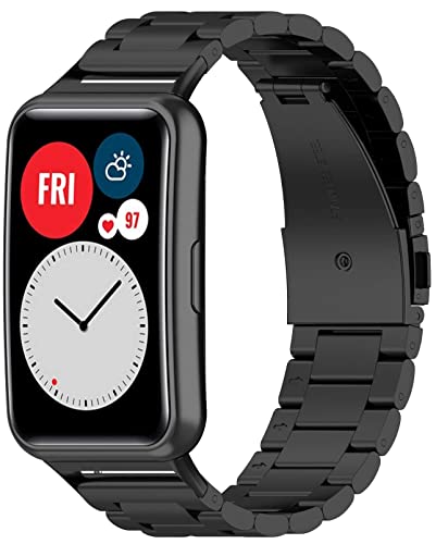 Generic - Generic Watch Strap Compatible for HUAWEI Watch Fit, Replacement Metal Smart Watch Strap Quick Release Stainless Steel Watch Band Wristband Compatible for HUAWEI Watch Fit (Black)