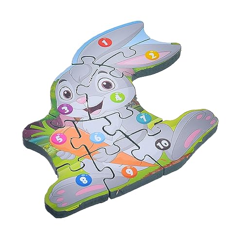 Generic - لوح بازل خشب مستطيل ثلاثي الابعاد بتصميم ارنب لتنمية مهارات الاطفال مجموعة من 10 قطع مقاس 25×15 سم - متعدد الالوان، طفل