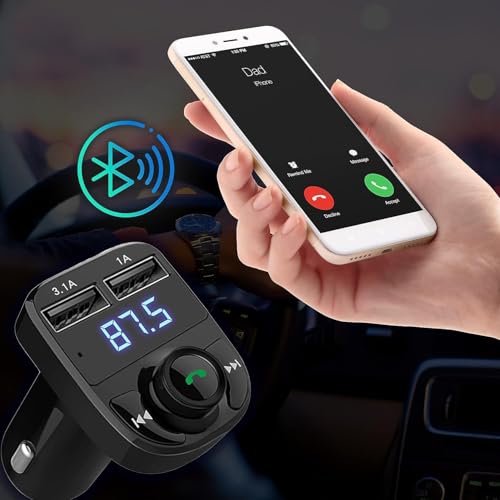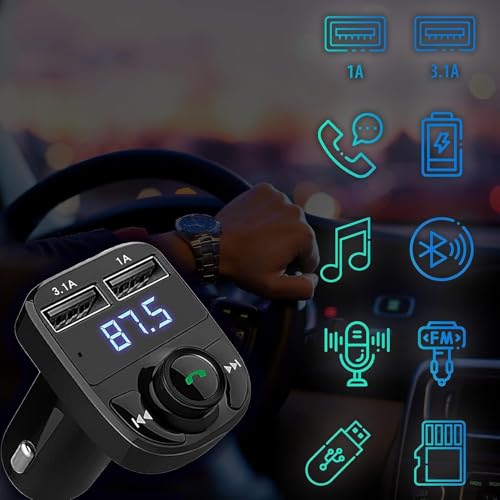 - MULTI-FUNCTION DEVICE: Car charger combines FM transmitter, Bluetooth connectivity, hands-free calling, and music playback capabilities in one compact unit.