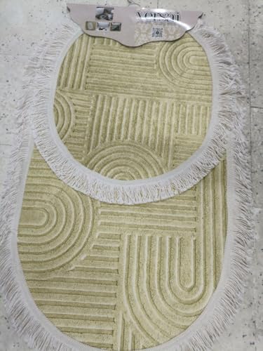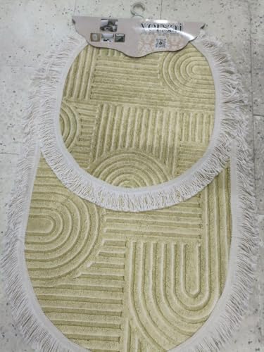 Generic - جيني طقم دواسات حمام بيضاوية مخملية تركية مكونة من قطعتين مع شراشيب ثلاثية الابعاد، اخضر، 95 × 60 سم و50 × 60 سم