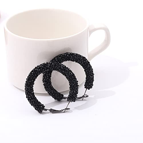 Generisch - Generisch Bohemian Shiny Glitter Sequin Hoop Earrings Wrapped Gold Plated Circle Statement Rhinestone Dangle Drop Earrings for Women Girls Boho Jewellery Earrings Girls Flowers, black, One Size