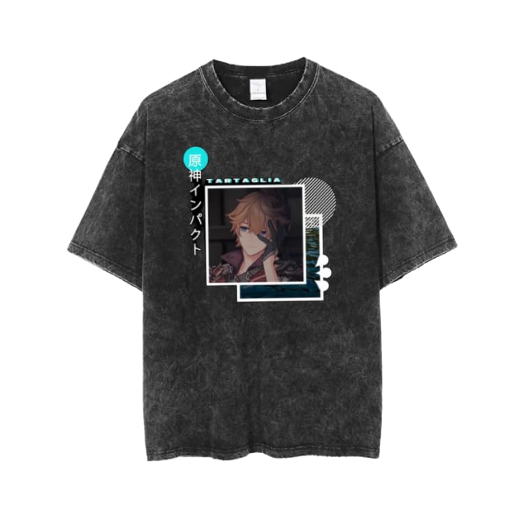 Generic - Genshin xiao zholing anime game gray washed acid hoodie 8