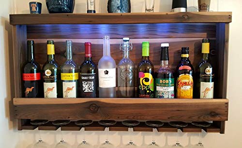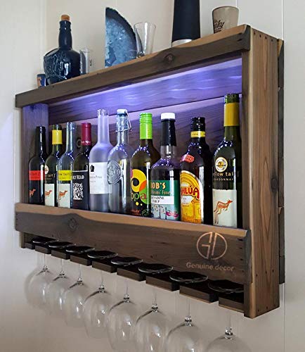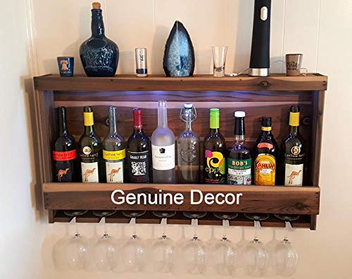 Genuine Decor - رف نبيذ وكؤوس من خشب شيشام الأصلي، حامل من 8 إلى 10 زجاجات، مثبت على الحائط | رف حامل كؤوس النبيذ | خزانة بار