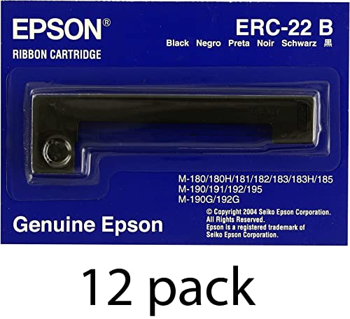 Epson - شمعة شريط أسود أصلية ايبسون (ERC-22B) من 12 قطعة لـ: M-180، M-181، M-183، M-185 (E65103)