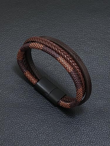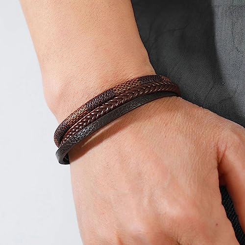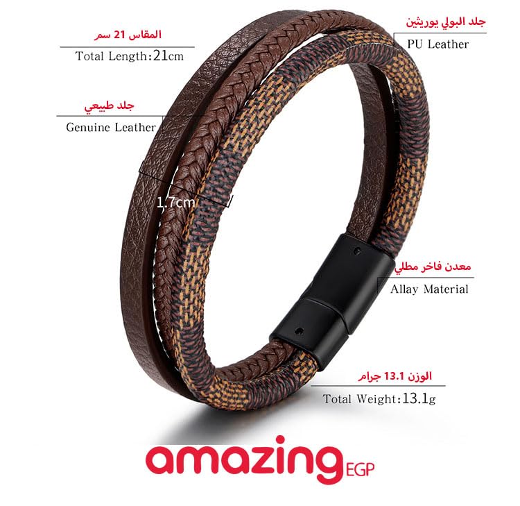 THE PACK - Genuine Leather Bracelet|amazingEGP|Stainless Steel Men's Classic Clasp, Multilayer, Gift Bracelet for Men