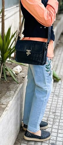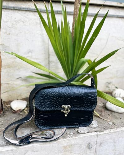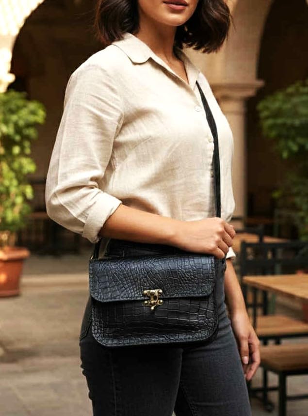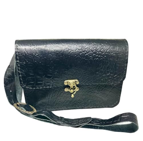 Generic - شنطة من الجلد الطبيعي كروس(أسود وطبعه التمساح البارز) هاند ميد 100%