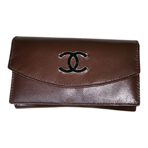 Generic - Genuine Leather Women Wallet Elegant Design Double Cover - Luxury Dark Brown Multi Use Zipper Pockets